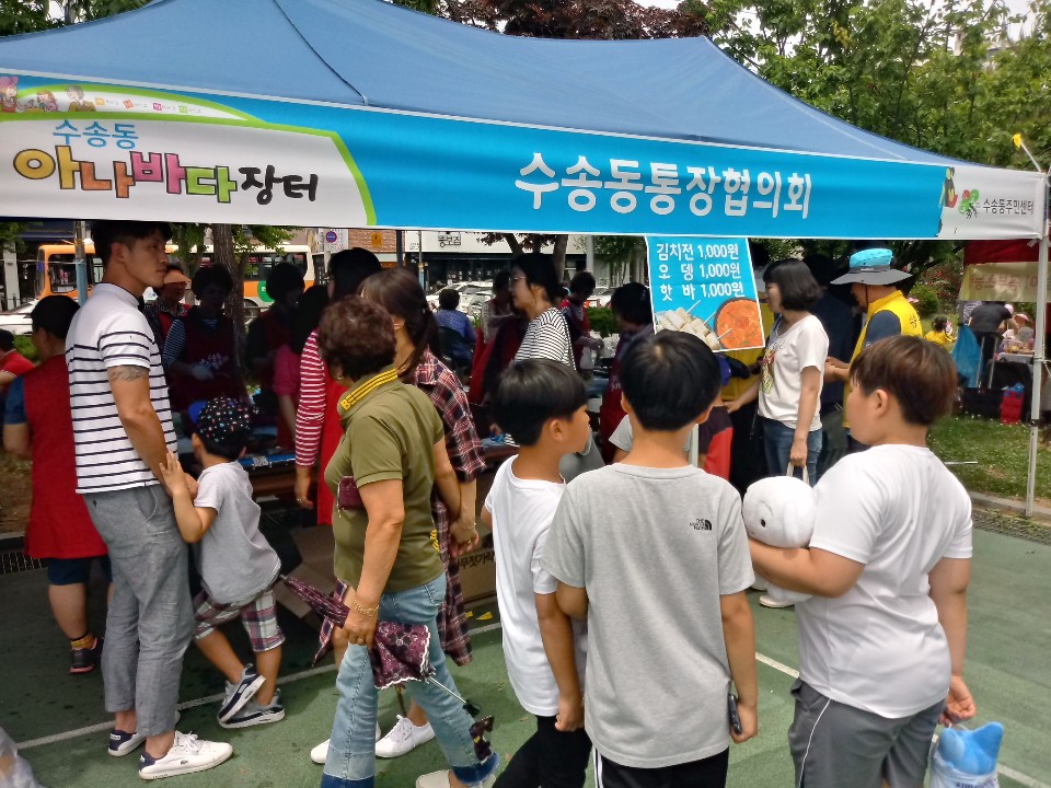 * 장소 : 수송체육공원주민이 직접 참여하여 함께하는 소통과 화합의 장으로 나눔거리, 먹을거리, 체험거리, 볼거리 등이 있으며자원과 환경을 생각하고 이웃이 이웃을 돕는 가치를 공유하는 수송동만의 아나바다 장터입니다!