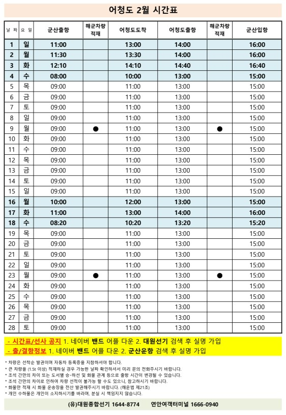 | 799 | 어청도 | 2026 | 2 | 어청도 2월 여객시간표 |