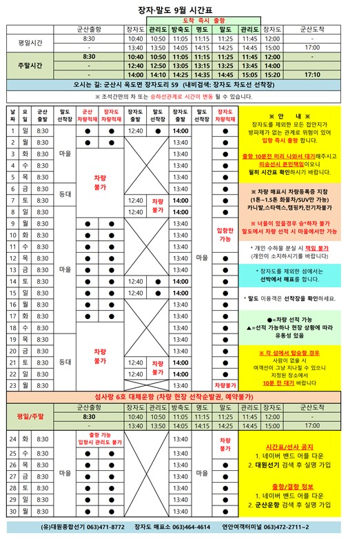 | 91 | 장자도 | 2024 | 9 | 장자도 9월 여객시간표 알림 |