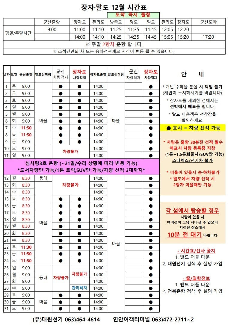 | 70 | 장자도 | 2022 | 12 | 장자도 12월 여객시간표 |