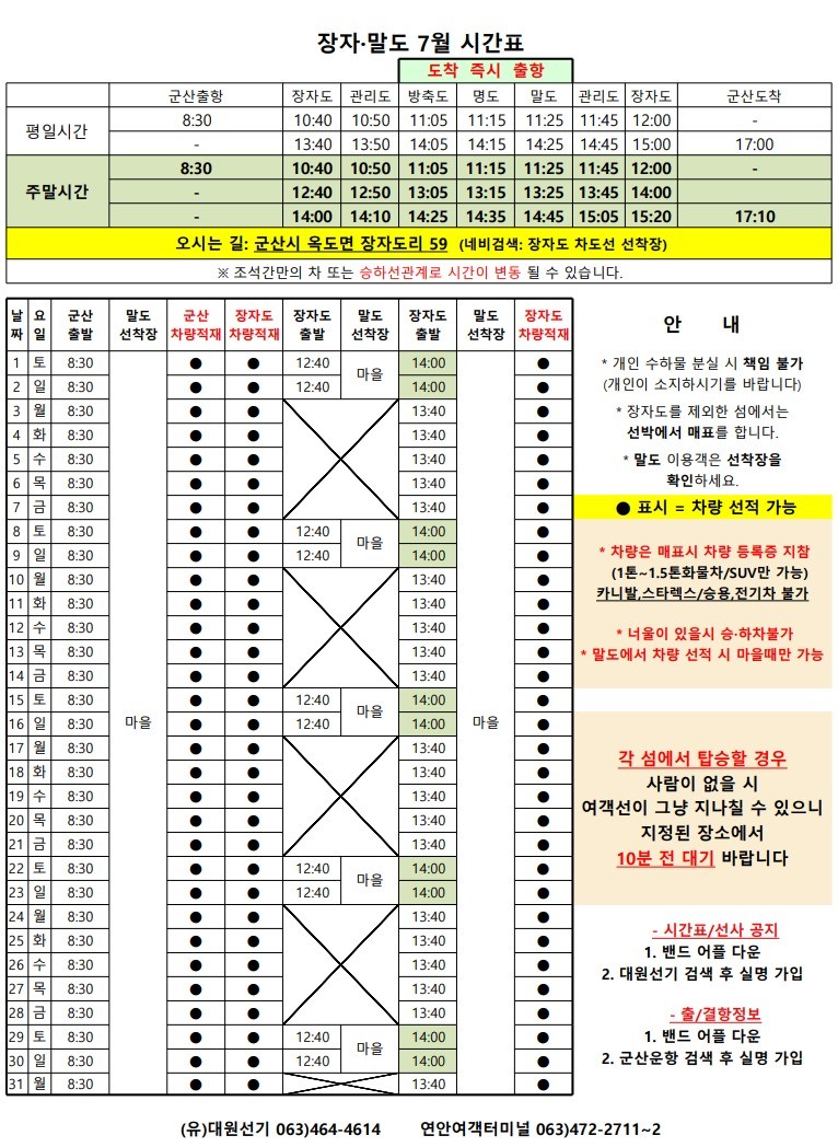 | 77 | 장자도 | 2023 | 7 | 장자도 7월 여객터미널 시간표 |