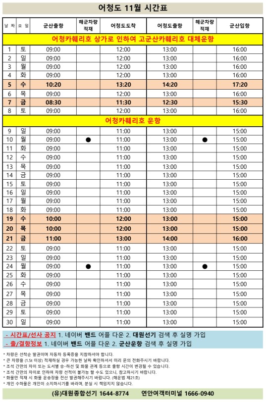 | 97 | 어청도 | 2025 | 11 | 어청도 11월 여객선 시간표 안내 |