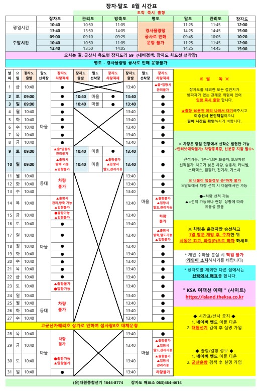 고군산 군도 섬여행 선박 운행 시간표 안내입니다.