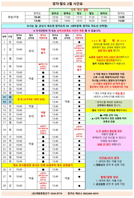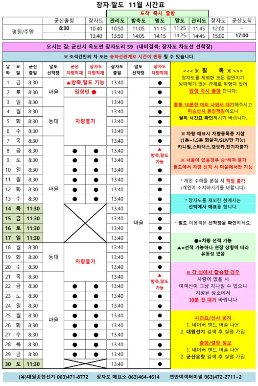 | 86 | 말도 | 2024 | 11 | 말도 11월 여객시간표 알림 |