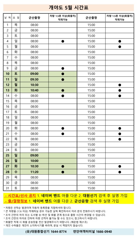 | 92 | 개야도 | 2025 | 5 | 개야도 5월 여객선 시간표 안내 |