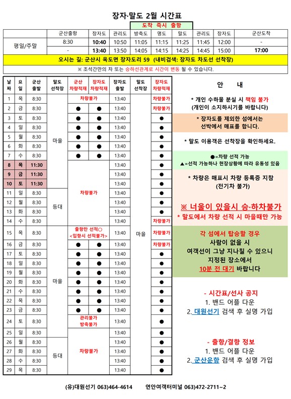 명도 2월 여객시간표 알림